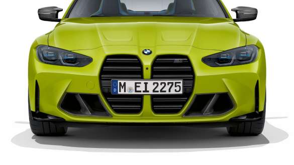 The front design of the BMW M4 Competition Coupé is a statement of technical purism. Placed at the centre is the bold character of the M kidney grille in a reduced interpretation for maximum dynamic effect. In a frameless design for the first time ever, the completely black kidney grille with horizontal M typical doubl